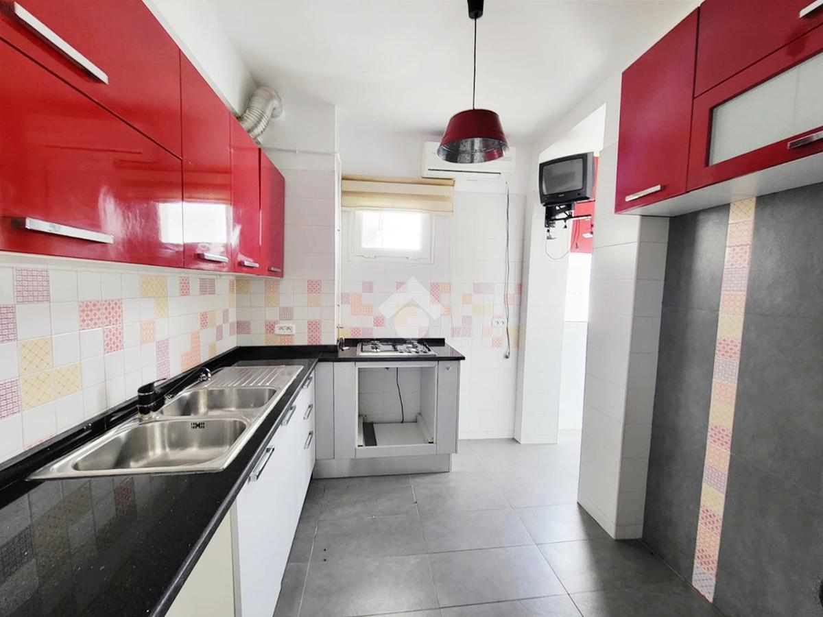 La cuisine est aménagée par des espaces de rangement et semi-équipée d'une plaque. Elle est complétée par un séchoir.
